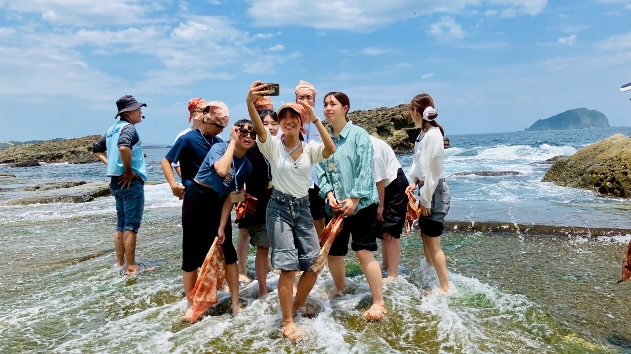 首先,在114年寒假期間,我們邀請了5位日本高知大學的學生來到台灣。他們與本校的4位學生組隊,在基隆八斗子及北海岸地區,共同進行了一場跨國地方創生交流與實作,將國際視野與在地議題緊密結合。