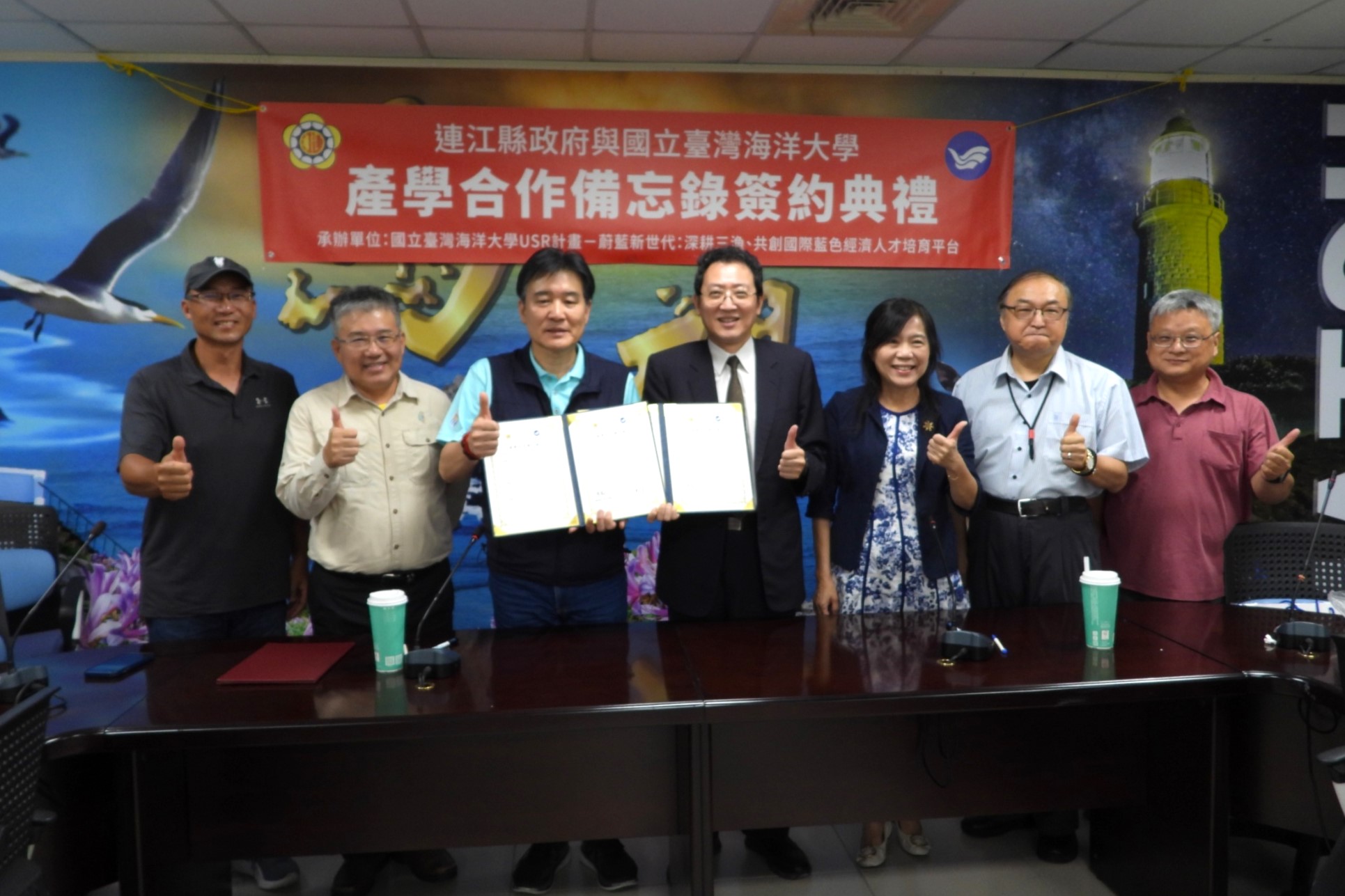 圖1-4-1,說明:海大與連江縣政府簽署MOU 攜手打造永續產業生態系。