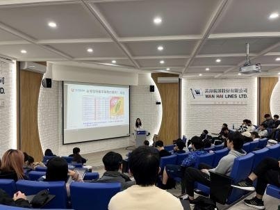 圖2-1-1,說明:周妤庭 經理(裕民風能公司)<離岸風電航運相關討論與發展現況等介紹>,產業接軌企業系列–海事培育人才講座。