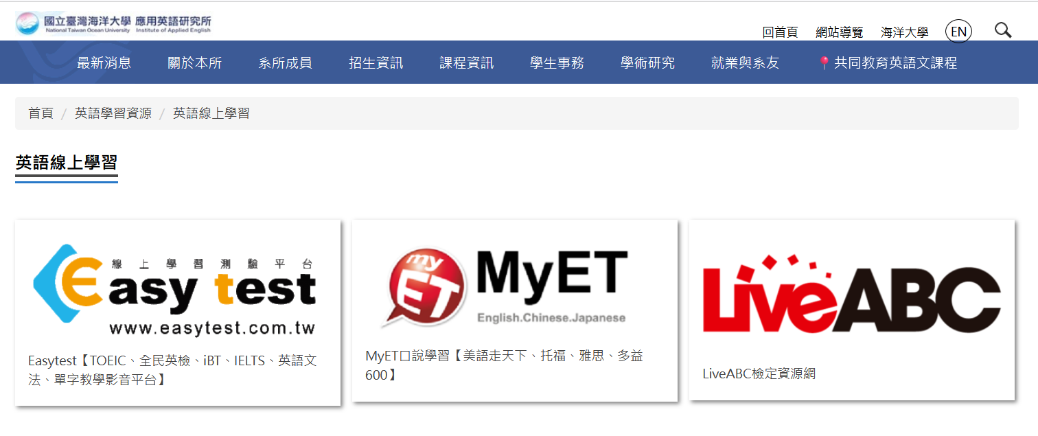 為了全面強化學生的核心英語實力,本校提供了多元資源:除了有分級英語課程與線上學習軟體外,我們也特別開辦全校性多益考試加強班,並每學期舉行一次全校性多益考試,以協助學生有效提升個人英語能力,如:112年至114年共計1,489人次應考;另,亦辦理全校型英文競賽,如:海洋英語字彙王、三分鐘海洋英語簡報競賽、海洋英文讀本閱讀競賽等,112年至114年共755人次參與。此外,本效亦推行「大一新生英文能力加強班」以協助本校大一學生未來於就學期間之全英課程(EMI課程)及至國外境外交換研修等之學習上更加無虞順利,並可同時提升其未來國際競爭力及就業力。